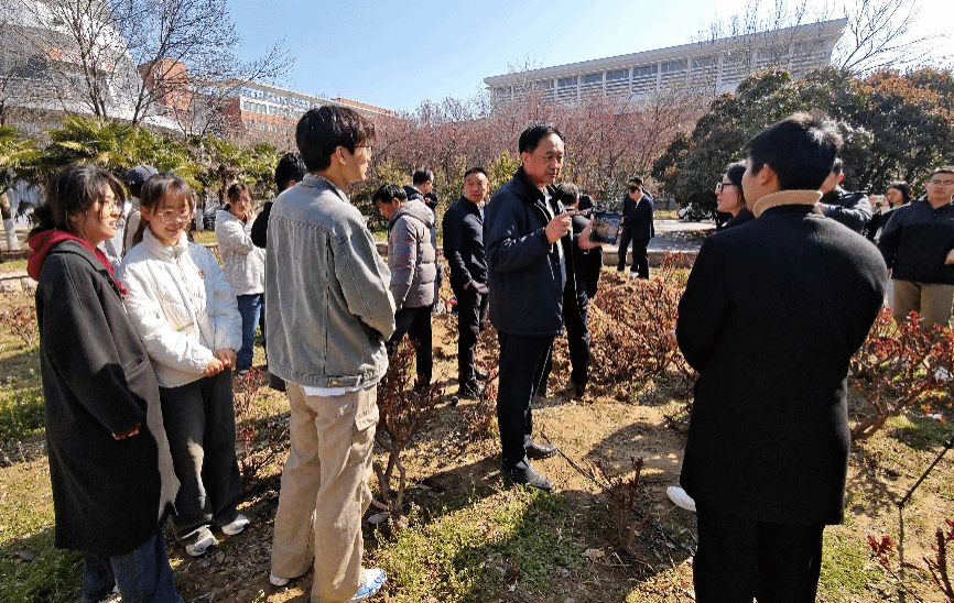 植树活动结束后,刘彦随同在场的学部领导班子成员与学生代表亲切交谈。他表示,河南大学地理学科已走过百余年历程,从初创时期的筚路蓝缕到如今的蓬勃发展,始终坚守初心,不断传承创新。如今,新栽种的泡桐树象征着新的希望与使命,它们将随着河南大学地理学科的持续发展,见证地理科学与工程学部在新时代的征程中迈向新的高度。刘彦随提出,河南大学地理科学与工程学部在新时代的征程中,应努力实现一年学科评估上台阶,三年交叉学科取得新突破,五年一流学科走在前列。他提议成立“景兰学社”,将红旗渠精神、大别山精神、焦裕禄精神和景兰科学家精神相融合,构建奋进者的精神家园。“景兰学社”将助力我们在新时代的征程中传承百年地学精神,不断开拓进取,书写地理事业的新篇章。