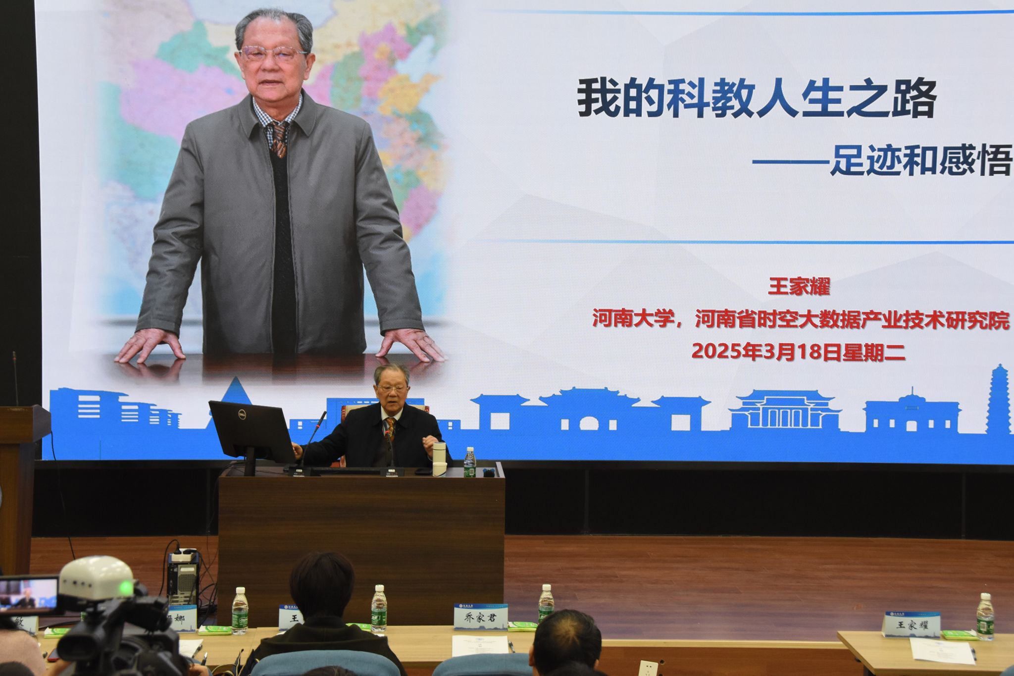 、交叉学科高等研究院、河南省生物物理学会联合开展的河南大学“X+医学”学科交叉交流会(X + Medicine Interdisciplinary Biweekly Seminar, “X+MIBS”)第089-2025-02期(总第89期)及铁塔之光科学家精神思政课在金明校区锥形报告厅举行。中国工程院院士、河南省时空大数据产业技术研究院院长王家耀受邀作《我的科教人生之路——足迹和感悟》主题报告,党委组织部副部长王玉珍、教师中心副主任王波、新闻与传播21点五龙