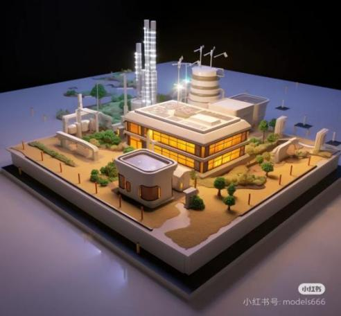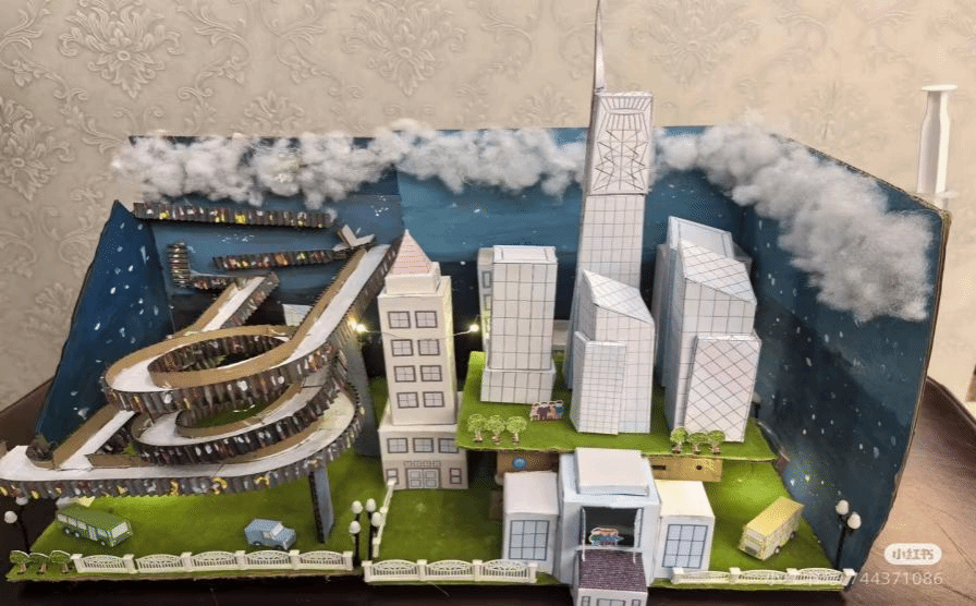 作品形式为实体模型。利用可回收物品或废品来制作模型,以彰显环保节能理念。