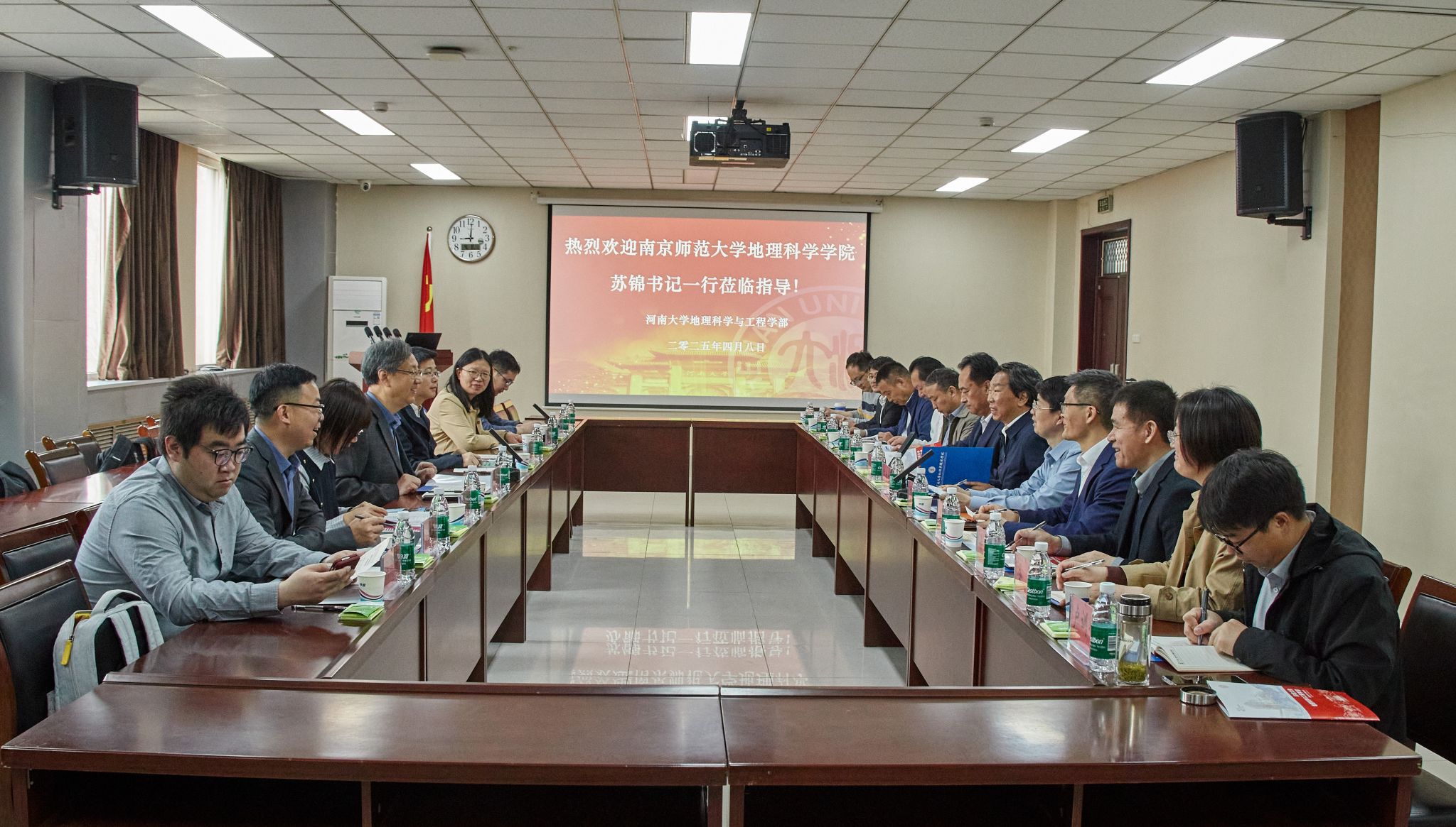 党委书记苏锦、院长黄昌春带领班子成员及相关老师一行来访,河南大学学术副校长、地理科学与工程学部主任刘彦随,地理学部副主任、黄河文明与可持续发展研究中心主任苗长虹,地理学部委员秦奋,地理学部委员、地理科学21点五龙