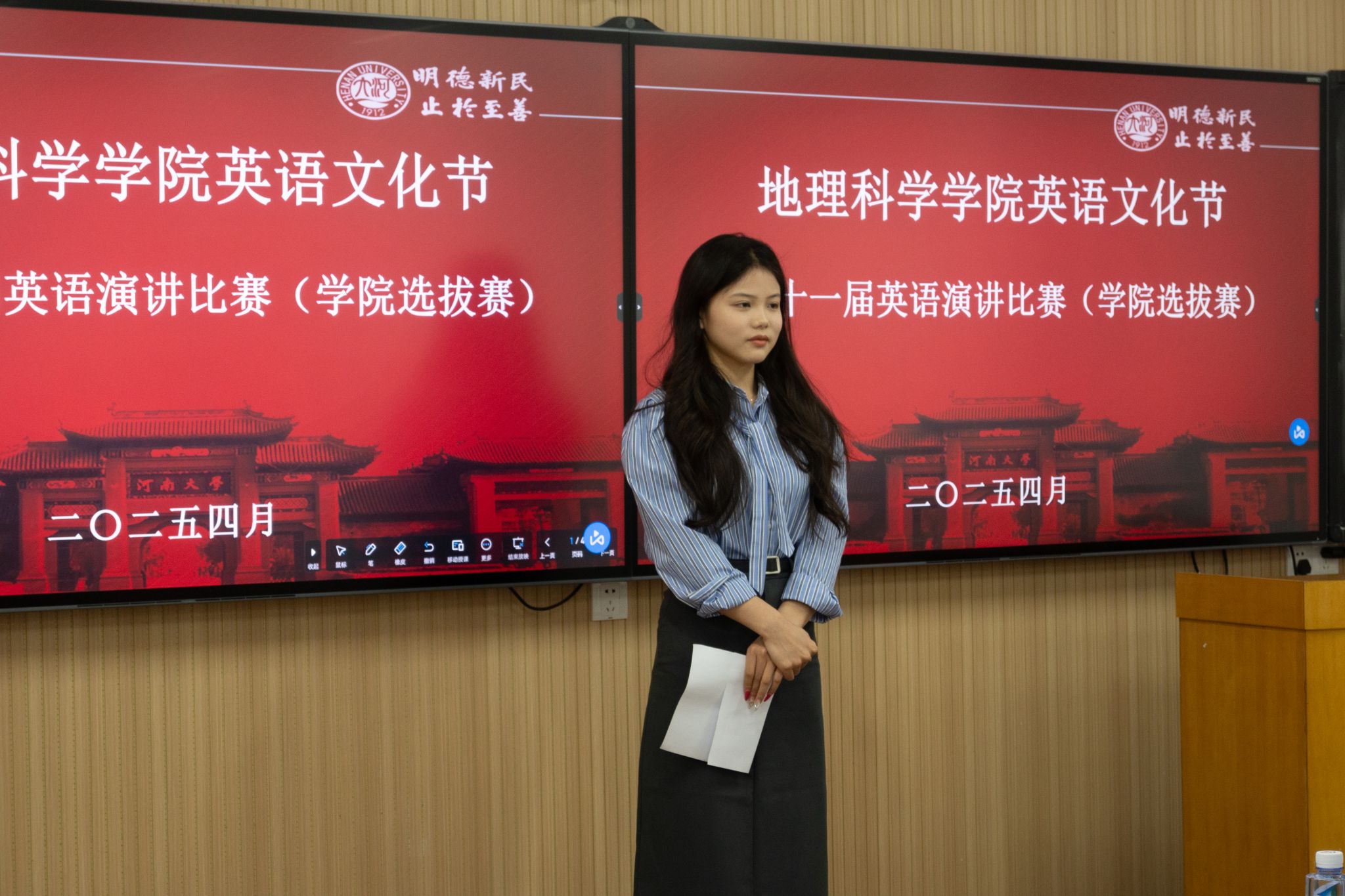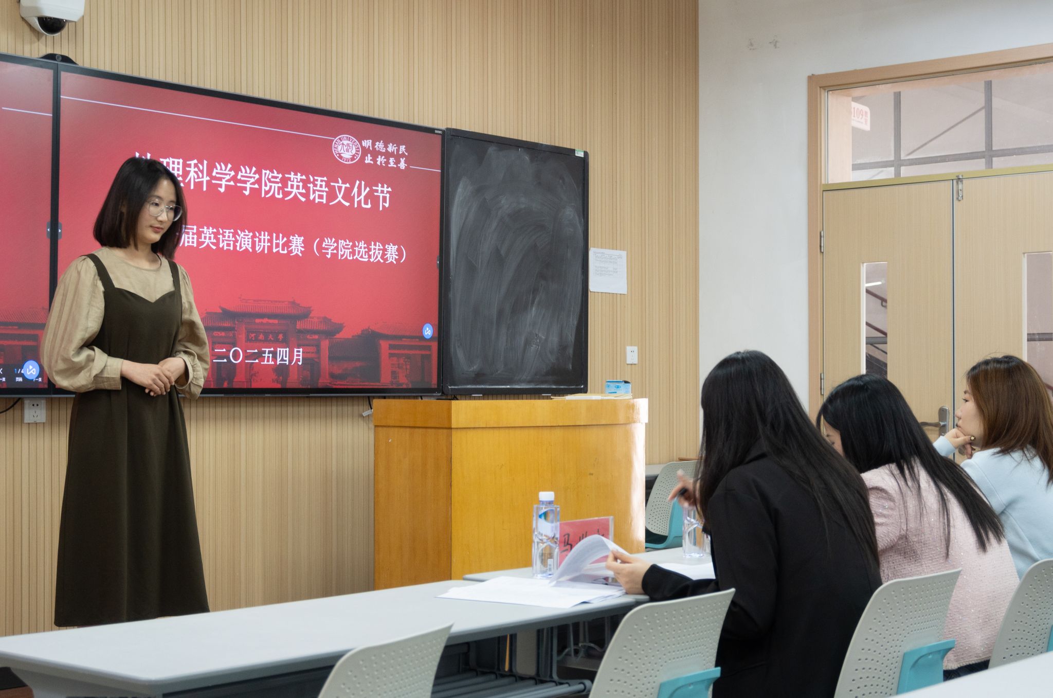 比赛开始,赵雨梦宣读比赛目的与规则,并对几位评委的到来表示热烈欢迎。过程中,选手们依次登台,以自信昂扬的姿态展开演讲。他们激情澎湃,用充满感染力的语言诠释对时代命题的深刻思考,标准的发音、流畅的表达配合恰到好处的肢体语言,展现出非凡的演讲风采。面对评委抛出的问题,他们从容不迫,逻辑清晰,用流利的英语展示了思考的深度,用自信的姿态传递了青春的力量,思维交锋间彰显智慧与思辩,赢得了在场观众的掌声。最后,评委们根据选手们的演讲内容、口语表达能力及仪态举止进行综合打分。