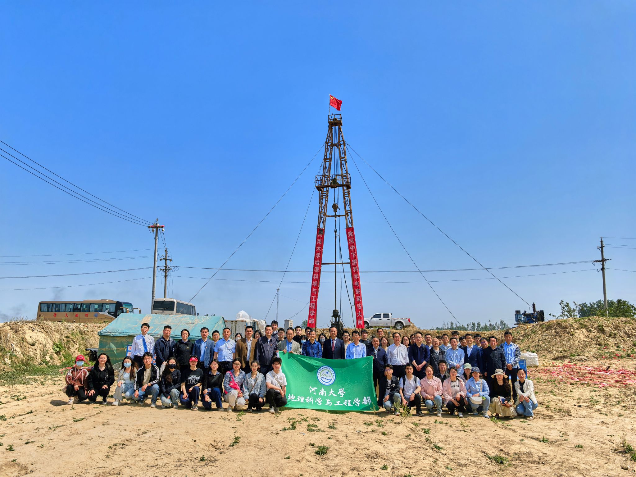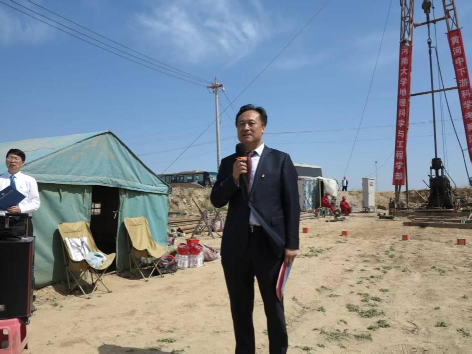 4月28日上午,河南大学地理科学与工程学部在黄河中下游科学考察深钻丁庄钻探现场举行开钻仪式。河南大学学术副校长、地理科学与工程学部主任刘彦随,水利部黄河水利委员会科技委委员、黄河水利科学研究院副总工程师李勇,河南大学“杰出人才特区支持计划”特聘教授苗晓东,校党委宣传部副部长陈旭、学科建设处副处长周云凯,地理科学与工程学部委员,地理科学21点五龙